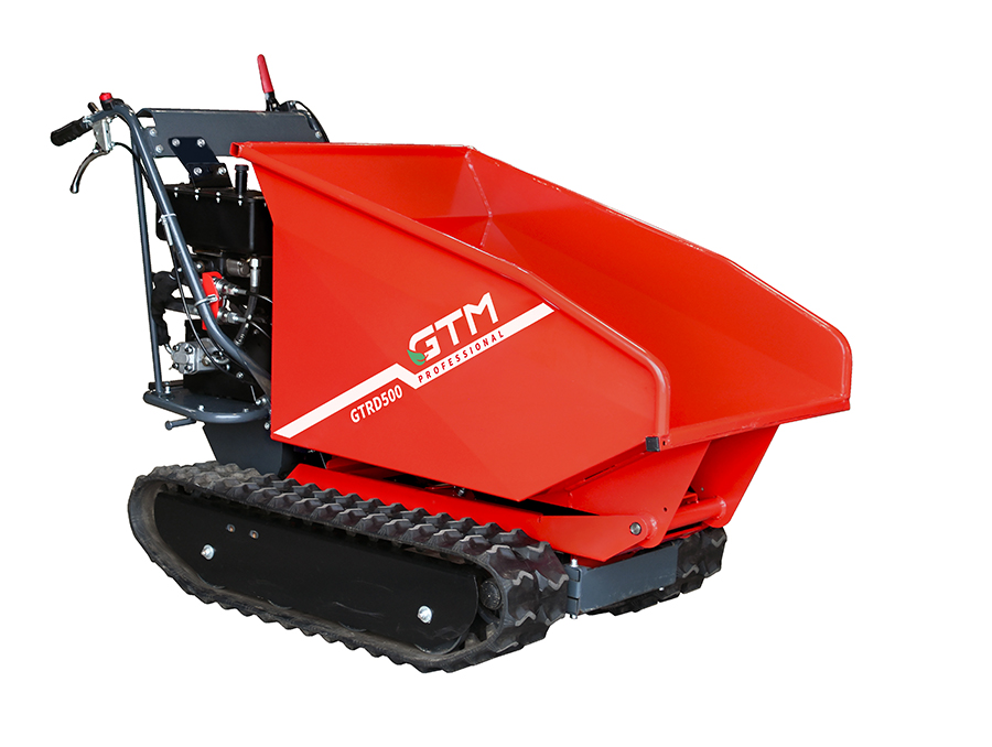 Für den Transport schwerer Materialien im Gelände bietet GTM Professional zwei Dumper-Typen an: den GTRD500 mit Standard-Kippbehälter und den GTRD500-F mit multifunktionaler Flachmulde. Beide Modelle haben eine Ladekapazität von bis zu 500 kg und sind wahlweise mit einem Loncin- oder Honda-Motor erhältlich.
