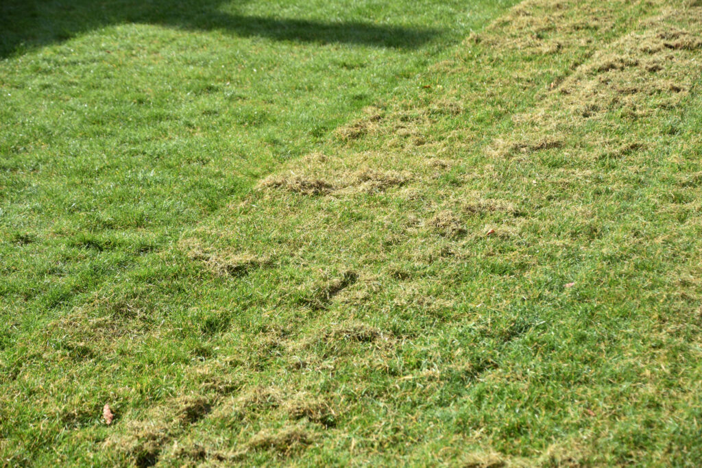 • Heeft je verticuteermachine geen opvangbak, hark dode mossen en ander los materiaal dan manueel uit het gras. Dat kan eventueel ook met een goede grasmaaier met opvangzak. [link invoegen].