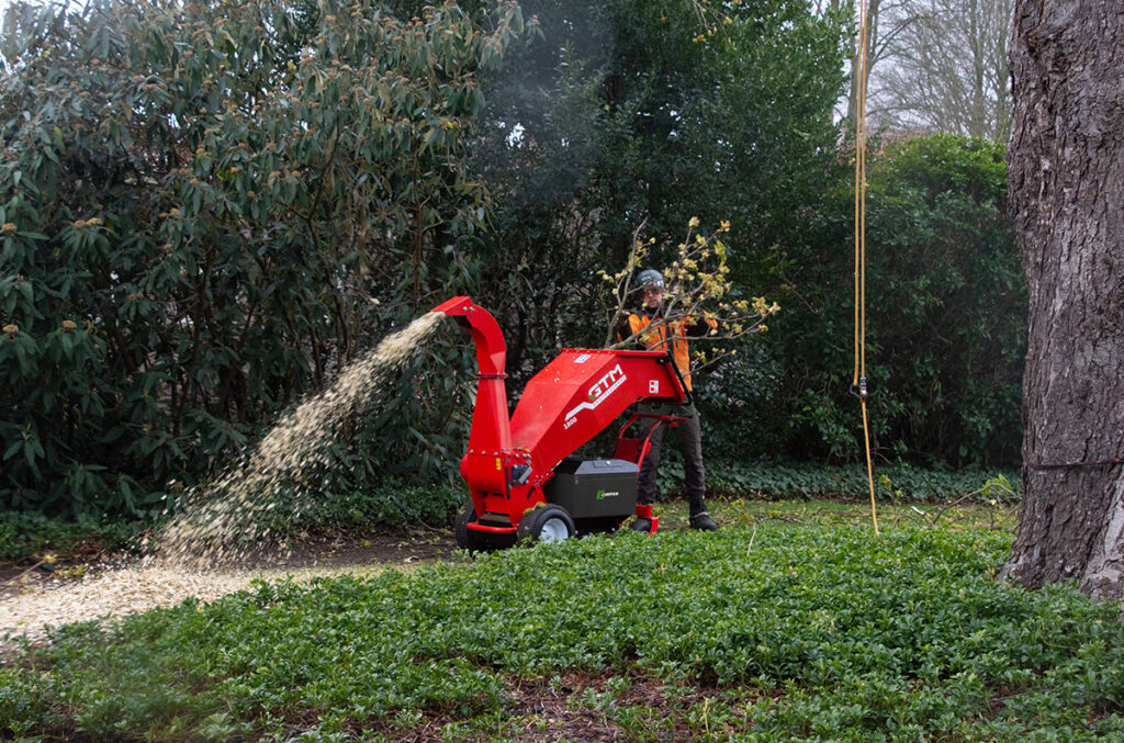 De nieuwe 1800 E-chipper van GTM Professional is een accu aangedreven houtversnipperaar. Daarmee profiteren groenprofessionals een schonere en stillere werkomgeving, optimale bewegingsvrijheid én een hoge capaciteit. Deze machine kan takdiameters tot wel 12 cm aan dankzij de sterke accu en een efficiënt rotor versnippersysteem met terugdraaifunctie.