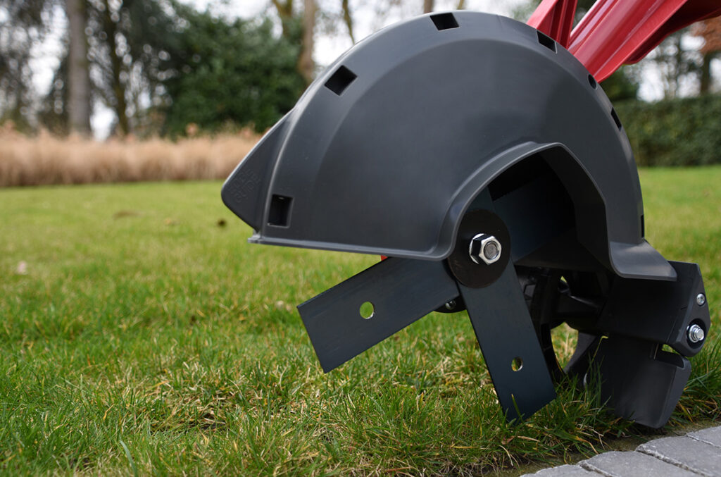 Een handige kantensnijder van GTM Professional voor particulier gebruik. Tijdens het gebruik loopt de maaier op het 4-tandsmes dat van hard staal is gemaakt.